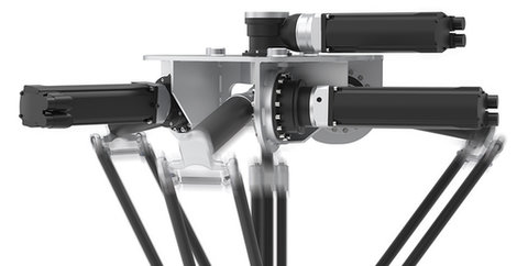 This is made possible by the characteristic kinematics of this robot type: All axes of its rod-based robot arms are arranged parallel. The ends of the arms, which can move in all directions, are connected by a small platform that supports a suction cup, for example.